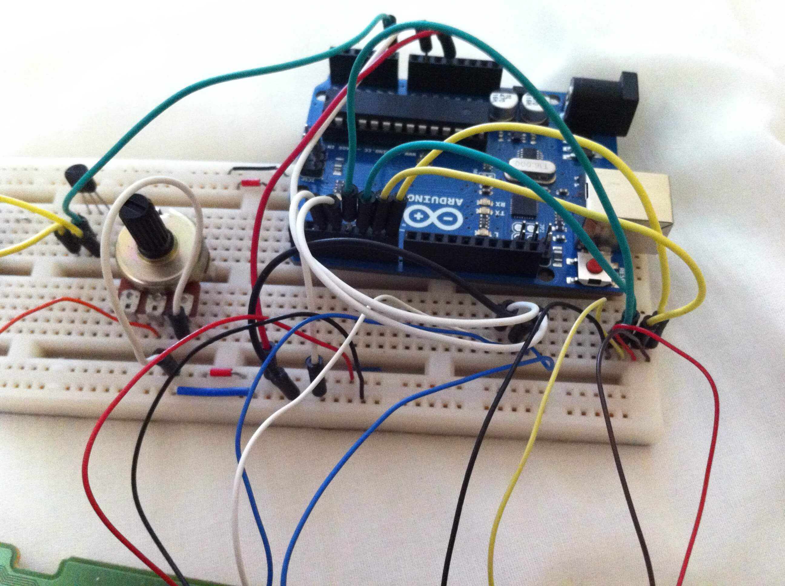 I then decided to do a “mini-project” just to do something semi-useful: a temperature display. A quick program was conjured up to read the temperature from a LM35 temperature sensor and display the value to the display (in Celsius). This is what’s shown at the top of this post.