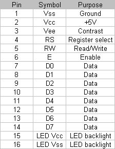 | 2 | Contrast — Connect to 5V for full contrast. Connect via a pot to Ground and 5V. |
