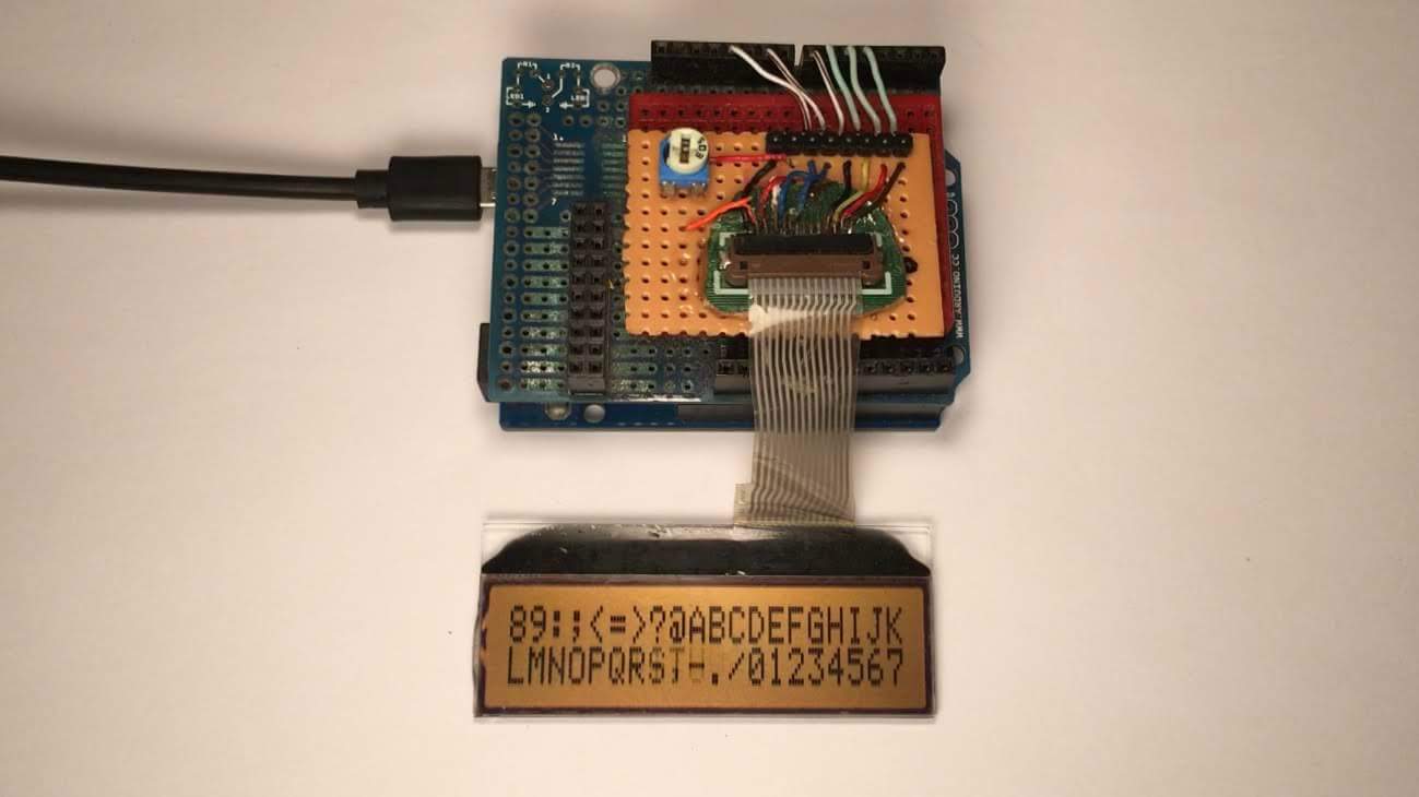 I connected an Arduino Leonardo to my salvaged display over its 4-bit interface, and got to work on the software side.